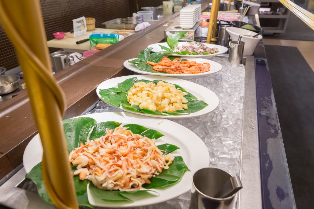 吃到飽最引人入勝的海鮮區,超霸氣的放上蝦子、小章魚等多樣食材,不同的料理方式更能吃到多元的海味!